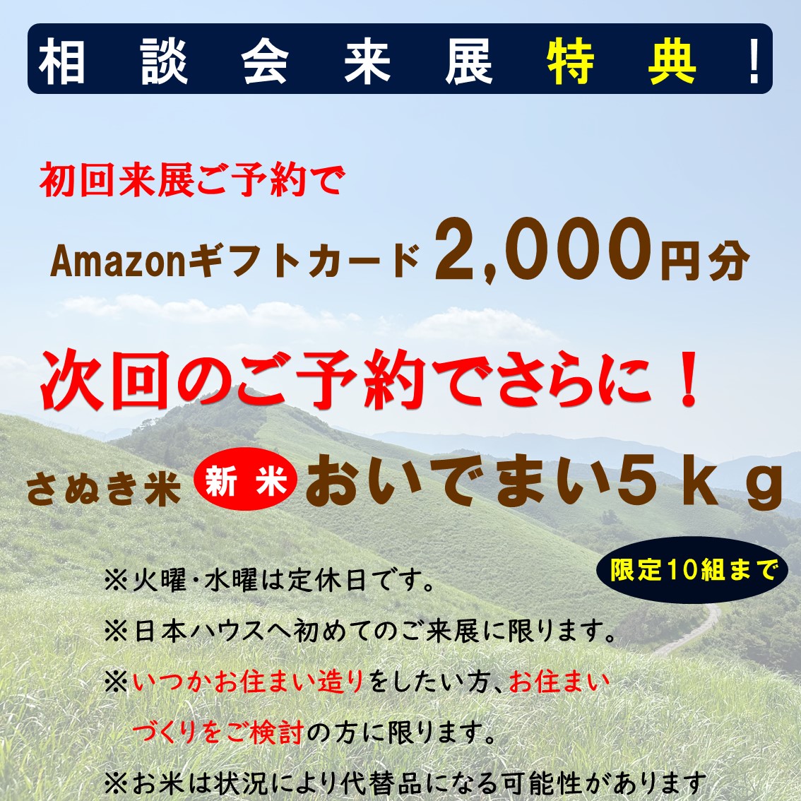 はじめてのお住まいづくり相談会開催!11/1(土)~11/30(日)ご来展特典はAmazonギフトカード2,000円プレゼント!さらに次回のご予約でさらにお米5㎏プレゼント!