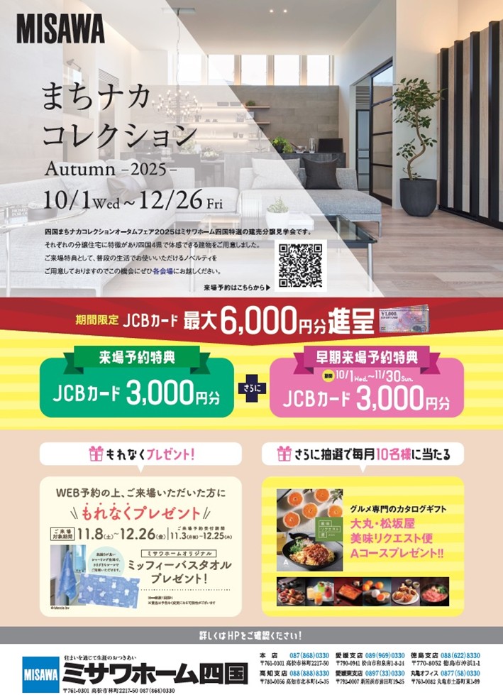 四国まちナカコレクション オータムフェア2025は、ミサワホーム四国特選の建売分譲見学会です。