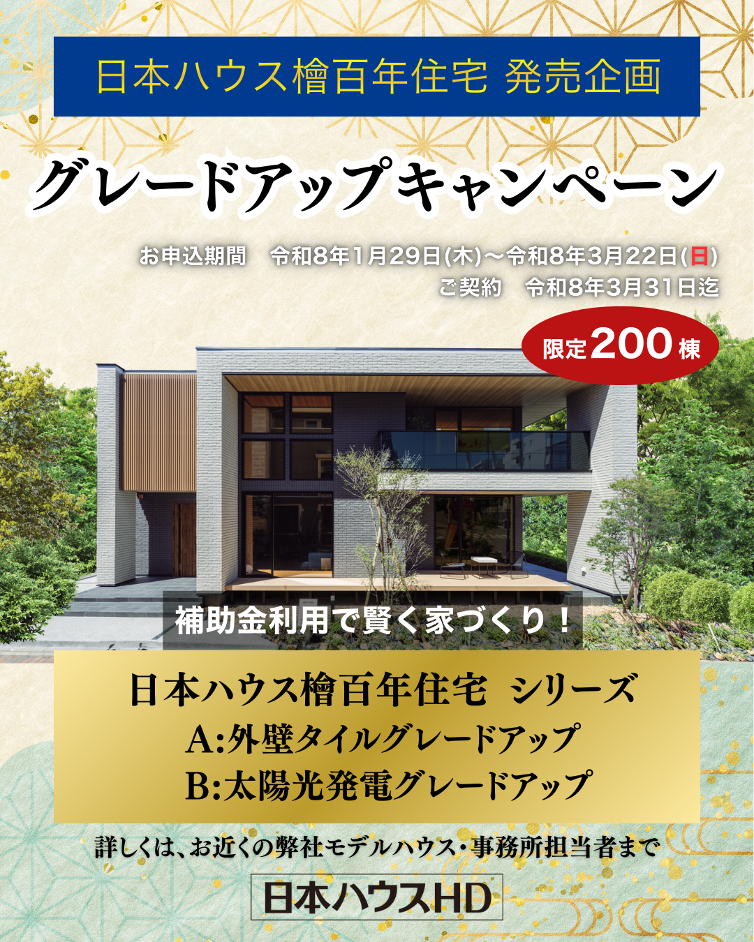【日本ハウスHD】1/31(土)~3/15(日)ご来展特典はAmazonギフトカード2,000円プレゼント!! 次回ご予約でお米5㎏プレゼントします。 詳しくはこちらをクリック♪