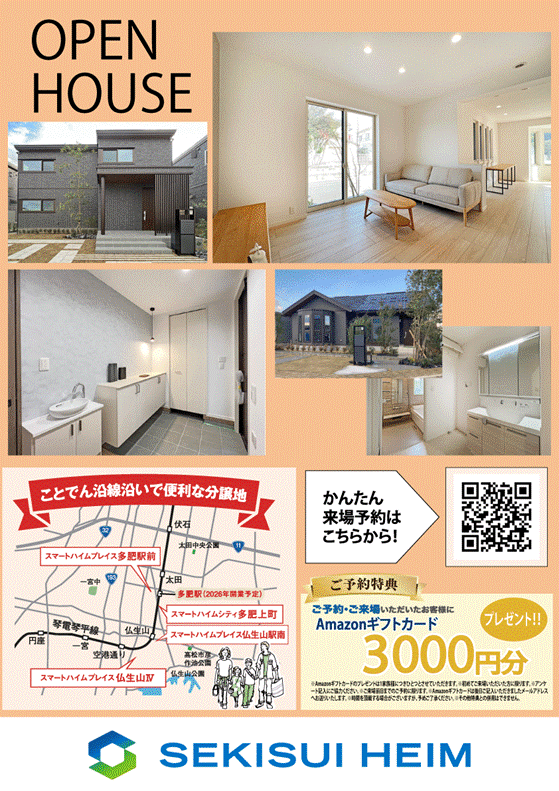 セキスイハイム東四国のHPからご予約の上ご来場いただいたお客様にAmazonギフトカード 3,000円分 プレゼント!